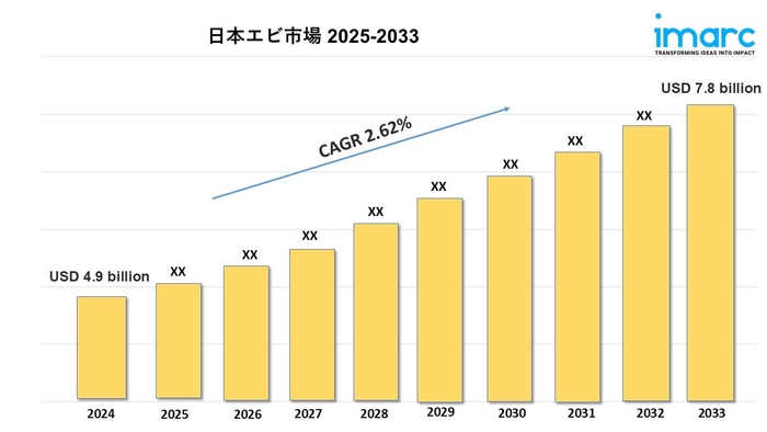 日本のエビの市場規模は2024年に49億米ドルに達しました。IMARCグループは、2025年から2033年までの年平均成長率(CAGR)2.62%で、2033年までに78億米ドルに達すると予測しています。
