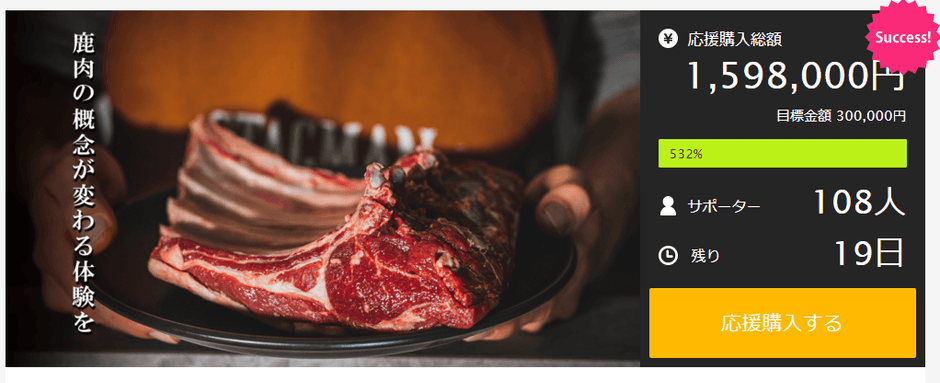 12月16日午後12時より、新オープンを記念して、鹿肉を堪能できるフルコースと、こだわりの自家製パンやワインが特典となる特別会員を、アタラシイものや体験の応援購入サービス「Makuake(マクアケ)」にて募集。プロジェクト開始3時間で100%を達成しました。