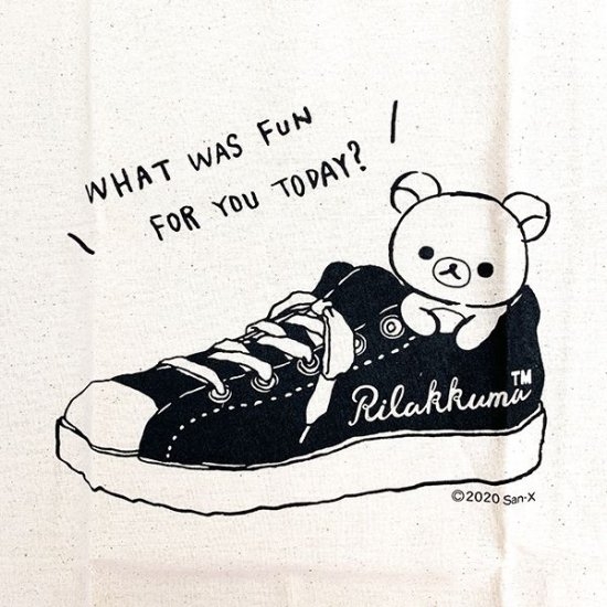 デザインのアップです♪手描き風タッチでクールな雰囲気のスニーカーとキュートなリラックマのギャップ萌え♡