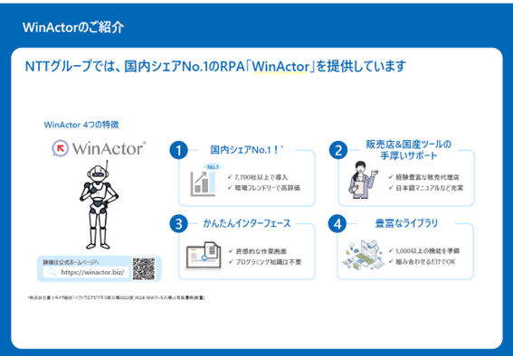 当社は、NTTブランド業務自動化RPA「WinActor」の数少ない正規一次代理店です。