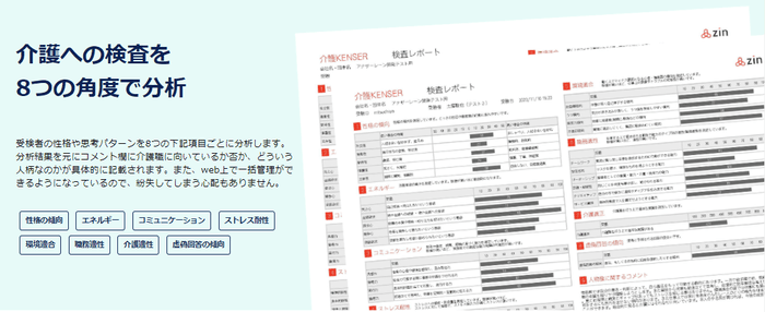 企業の採用をサポートするZIN株式会社(東京都千代田区 代表取締役社長:児玉 北斗)は、介護施設の採用精度を向上させるために、介護業界に特化した適性検査「介護KENSER」を開発、販売を開始しました。
