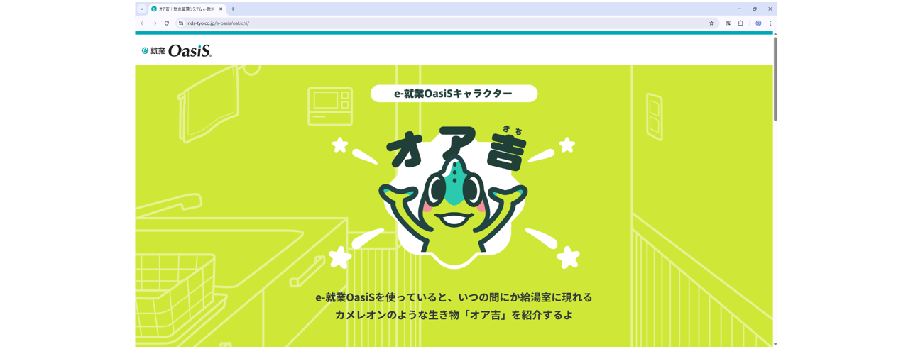 株式会社ニッポンダイナミックシステムズ(東京都世田谷区、代表取締役:平山 武司)は、自社が提供する勤怠管理システム「e-就業OasiS」のイメージキャラクター『オア吉』の公式WEBサイトを公開しました。
