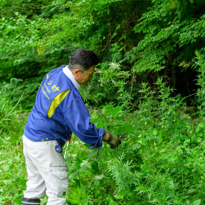 ホタルが生息する、自然豊かな「作並・新川地区」で、よもぎの摘み取り作業を行っています。今年も旬の香り、生よもぎの季節がやってきました。