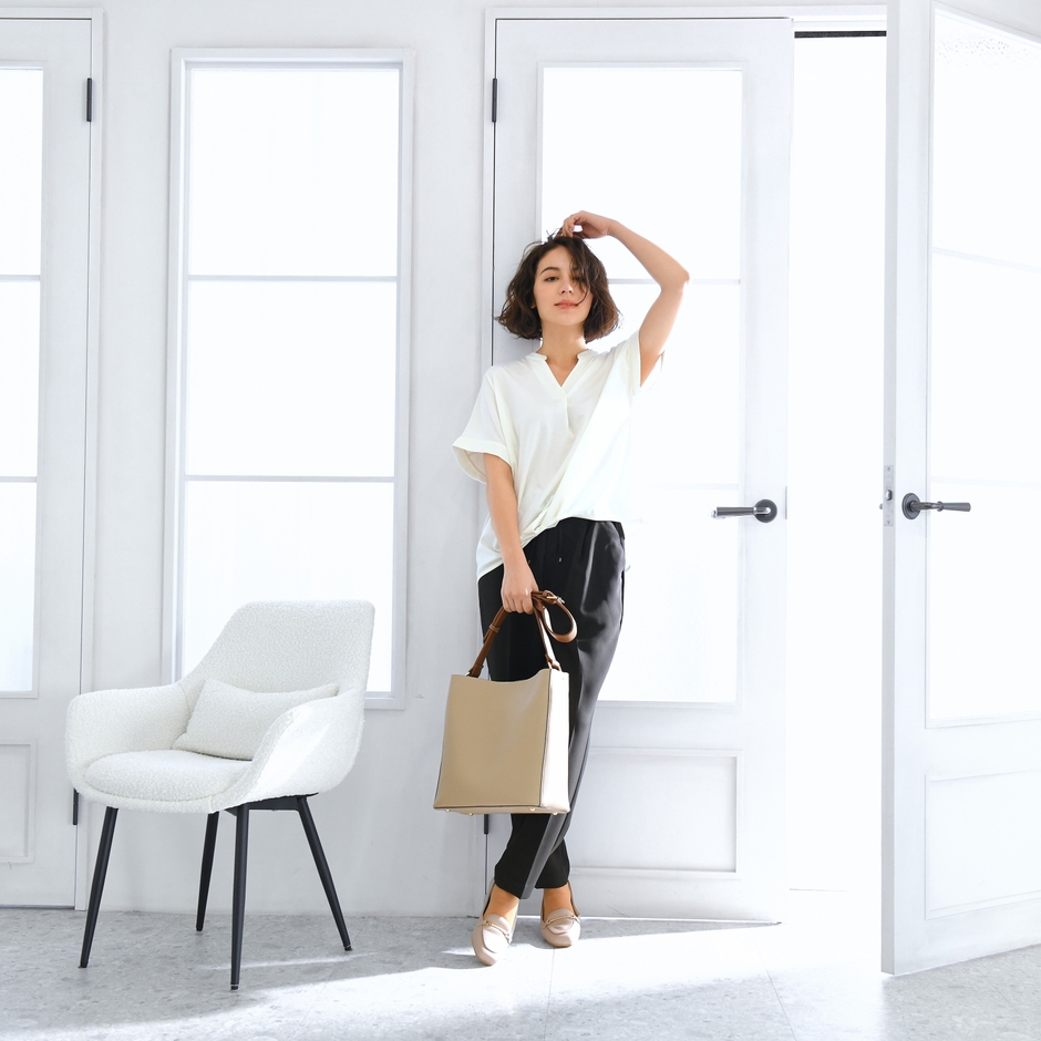 悩み多き世代の“こんな服が欲しかった”という想いに寄り添い、気になる腕回りや腰回りなどはゆとりのある作りになっており、動きやすく体形カバーも叶う。デニムの後ろウエストはゴムを入れて着用感は楽にも関わらず、ギャザーを入れないことによってスッキリして見えるようにシルエットにも工夫。