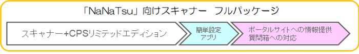 NTTデータ社が提供する「NaNaTsu(R)」の推奨仕様に準拠したコダックスキャナーと、「NaNaTsu(R)」向けの設定が簡単に作成できる「簡単設定アプリ」を組み合わせた基本パッケージ(2022年2月1日提供開始)と、基本パッケージに「NaNaTsu(R)」でスキャナーを活用する際の基礎知識や質問箱などのポータルサイトへの情報提供等のサポートを組み合わせたフルサポートパッケージ(2022年秋提供開始予定)の2つのパッケージをご提供します。