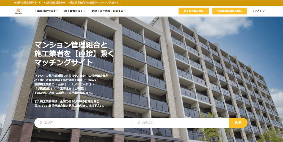 マンション管理組合と施工業者を“直接”繋ぐマッチングサイトです。