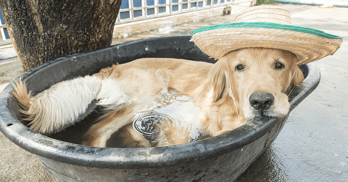 他にも、水をためることのできる場所が近くにあれば水の中に愛犬をつけてあげましょう。