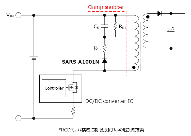 SARS-A1001Nは絶縁型スイッチング電源の一次側クランプスナバ回路に使用します。