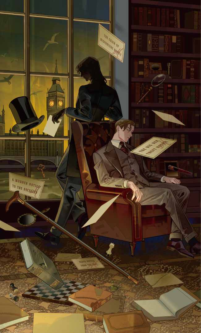 「ビッグ・ベン盗難予告」「死者への殺人予告」「連鎖する不幸の予告」などの全8章構成で、読者は次々と届く予告状の謎に挑みます。1章ごとに遊べるので、短編小説のような手軽さで誰もが一度はあこがれる、犯行予告状の謎を解くドキドキ感と、シャーロック・ホームズの世界に没入できる濃厚なストーリーを楽しめます。最終章には本書最大の謎と「読者への挑戦状」が待ち受けており、ボリュームたっぷりで上質な謎解き体験が最後まで読者を待ち受けます。