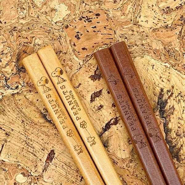 左側が梅、右側が桃の箸です。どちらも落ち着いた木製の箸で、おしゃれなご飯に合います!スヌーピーがお好きな方はぜひこのシリーズの食器を集めてください。