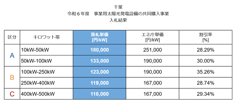 千葉県「みんなの会社に太陽光」の入札結果
