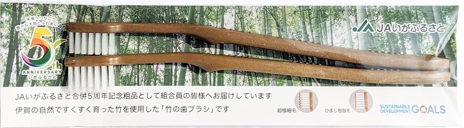 そうした「竹の歯ブラシ」が持つSDGsな特性と、地域づくりに貢献するJAいがふるさとの意向が合致。JAいがふるさとのご理解の下、竹林の拡大という地域課題を軽減すると同時に、サスティナブルなオンリーワンの記念品「伊賀の竹の歯ブラシ」を生み出すことができました。