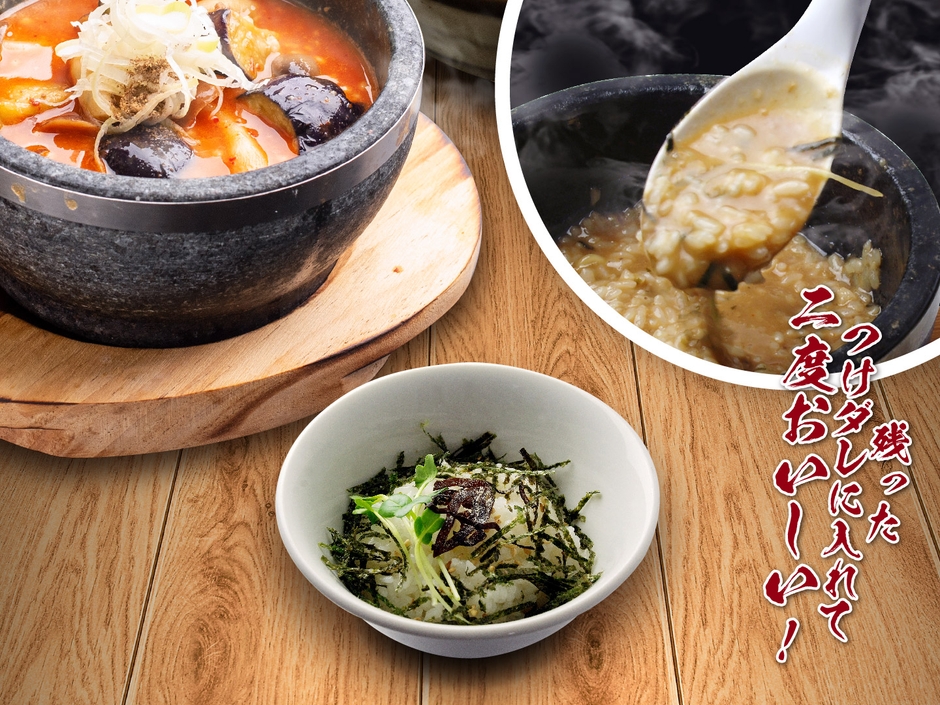 さらに、是非試して頂きたいのが割り飯トッピング。残ったつけダレに割り飯を入れて、美味しいスープを一滴残らずお楽しみいただけます。