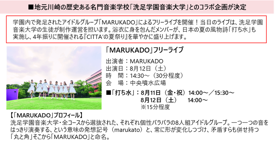 川崎駅前の複合商業施設『ラ チッタデッラ』(神奈川県川崎市川崎区、運営:株式会社 チッタ エンタテイメント/代表取締役社長:美須アレッサンドロ)は、当駅前で開催される夏のイベントとして最大級規模となる『CITTA'の夏祭り』を、2023年8月11日(金・祝)~13日(日)の3日間実施いたします。