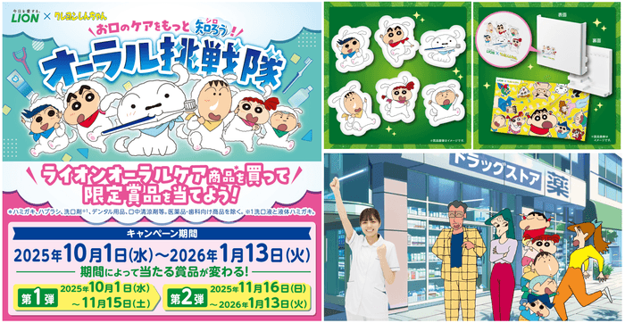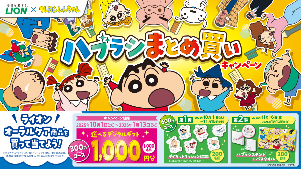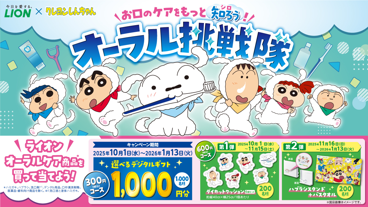 ライオン株式会社(本社:東京都台東区)は、ライオンのオーラルヘルスケア商品と「クレヨンしんちゃん」がコラボレーションした「お口のケアをもっと知ろう!オーラル挑戦隊/ハブラシまとめ買い」キャンペーンを、2025年10月1日(水)から開始します。