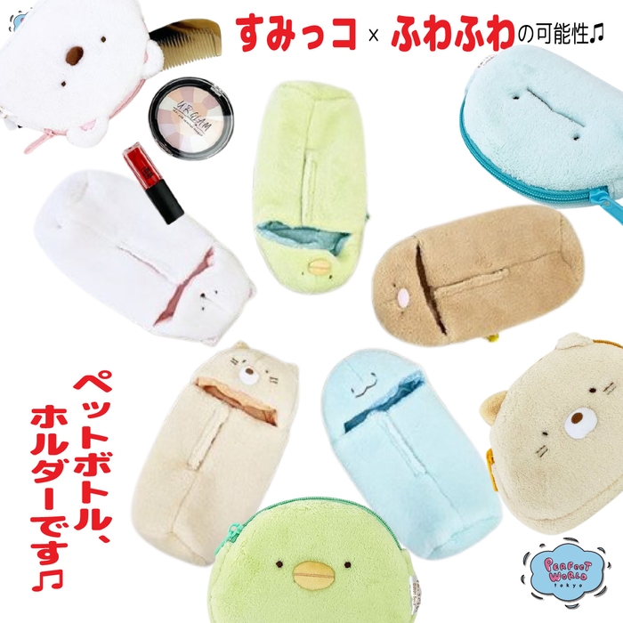 モフモフっなすみっコぐらしたち♪ソフトで軽い素材がぬいぐるみのようなボトルホルダー&ポーチ