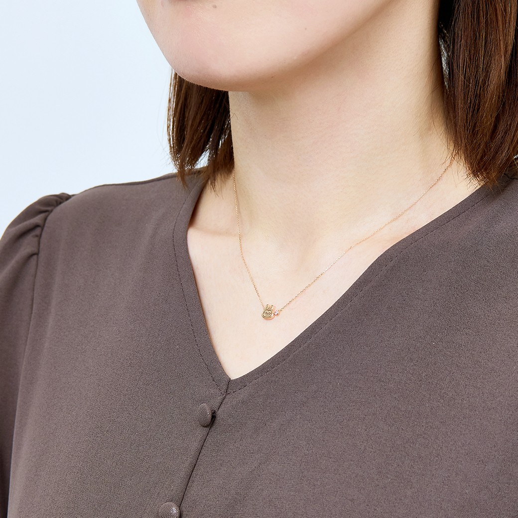 笑顔いっぱいの「ラブラビット」とワンポイントのストーンが胸元で愛らしくきらめくデザイン。