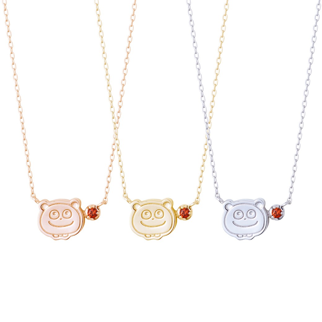 にんまり笑顔の「ごきげんぱんだ」とワンポイントのストーンが、胸元で愛らしくきらめくデザイン。