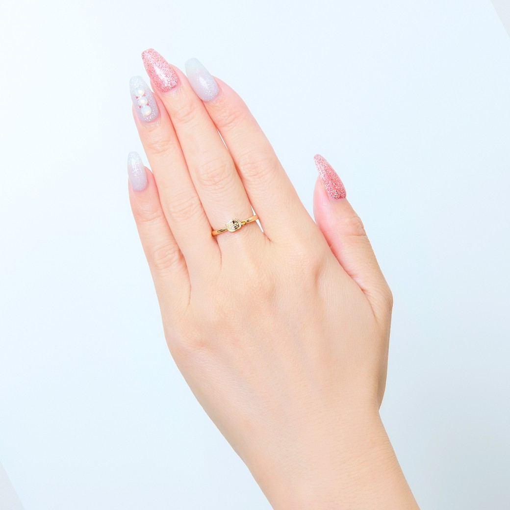 笑顔いっぱいの「ラブラビット」と、ワンポイントのストーンが指先に輝きを添え、見るたびに笑顔になれるデザイン。