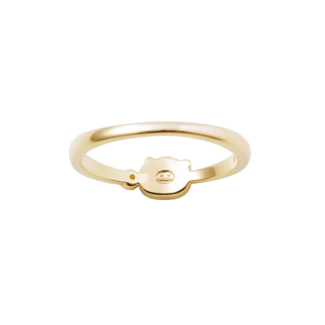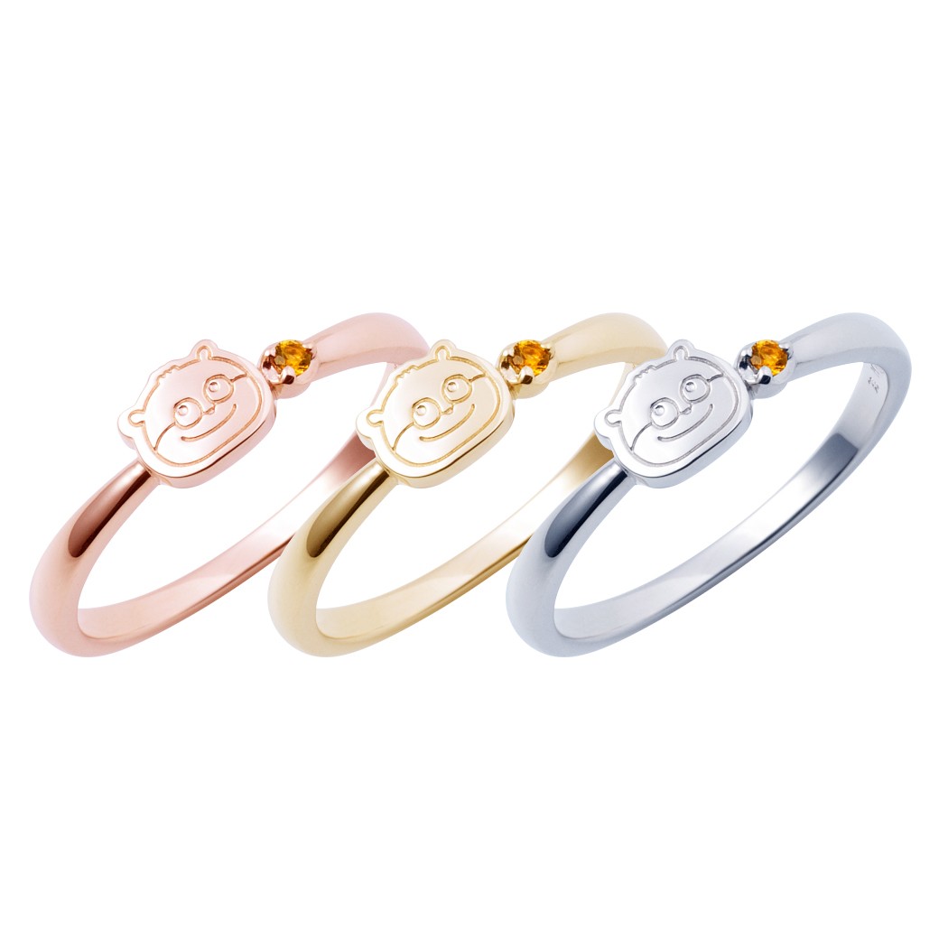 にんまり笑顔の「ごきげんぱんだ」と、ワンポイントのストーンが指先に輝きを添え、見るたびに笑顔になれるデザイン。