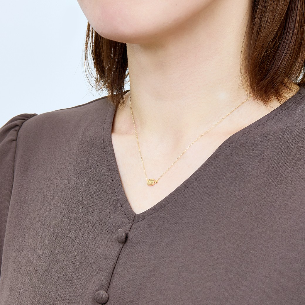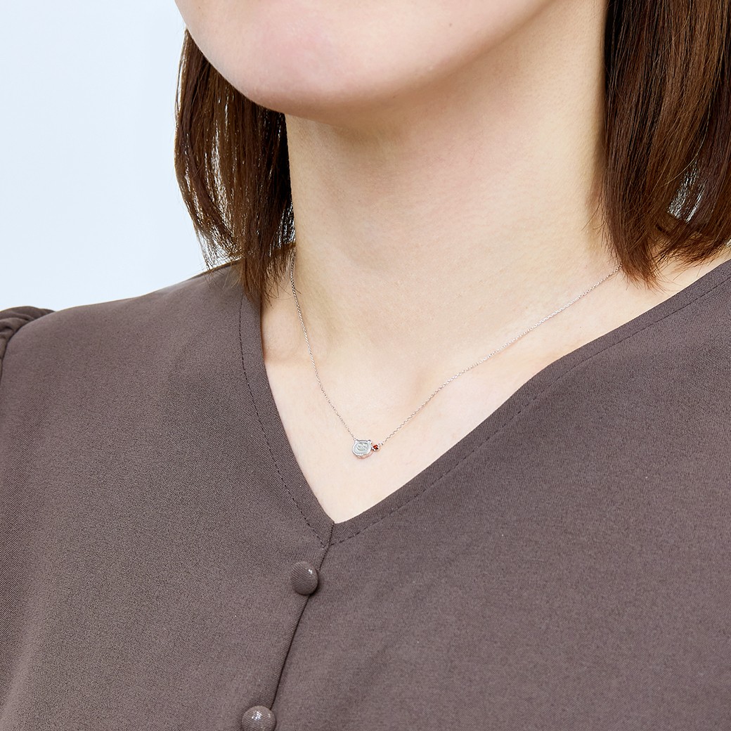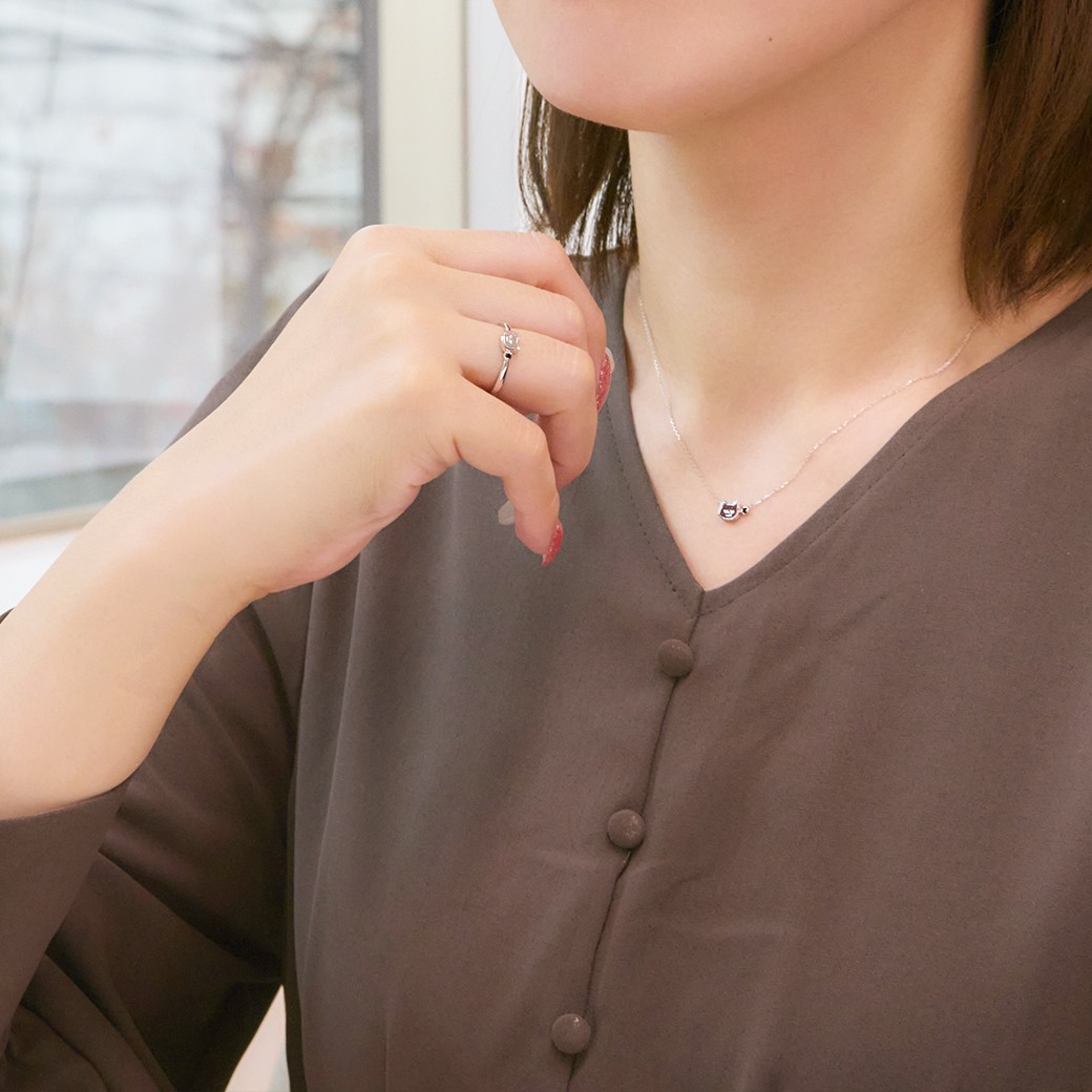 ちょっぴり甘え上手な「こねずみ」とワンポイントのストーンが、胸元で愛らしくきらめくデザイン。