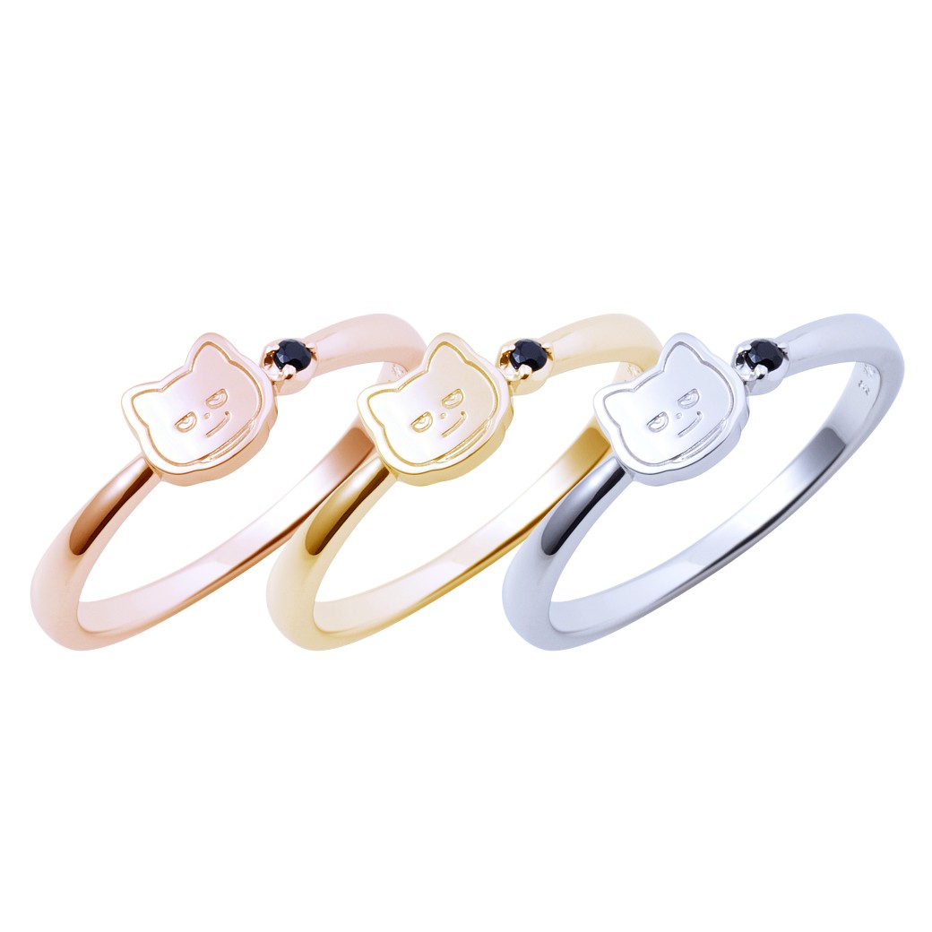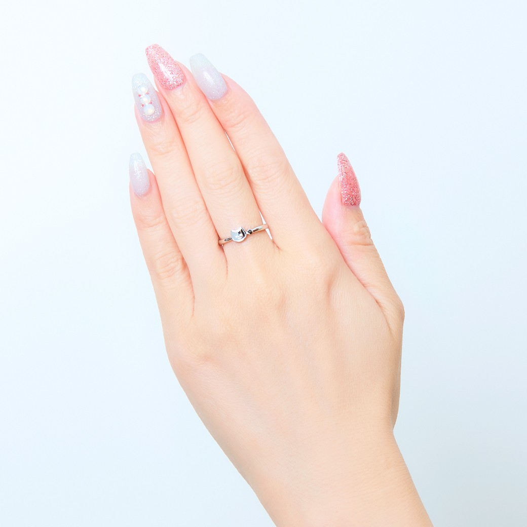 たくらみ顔をした「わるめのねこ」と、ワンポイントのストーンが指先に輝きを添え、見るたびに笑顔になれるデザイン。