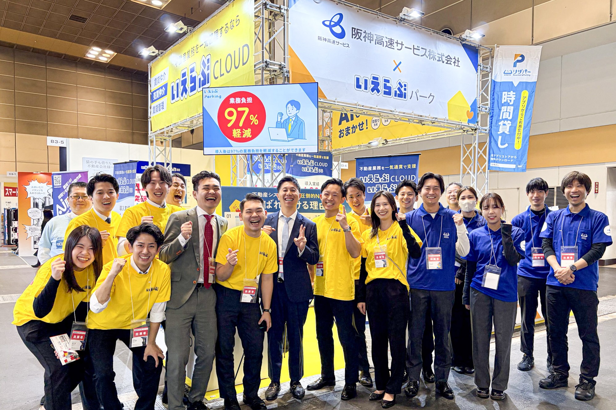 今回は、いえらぶGROUP・いえらぶパーク・阪神高速サービスの合同ブースを出展しました。黄色と青を基調とした視認性の高いデザインが来場者の目を引き、多くの方に足を運んでいただきました。
