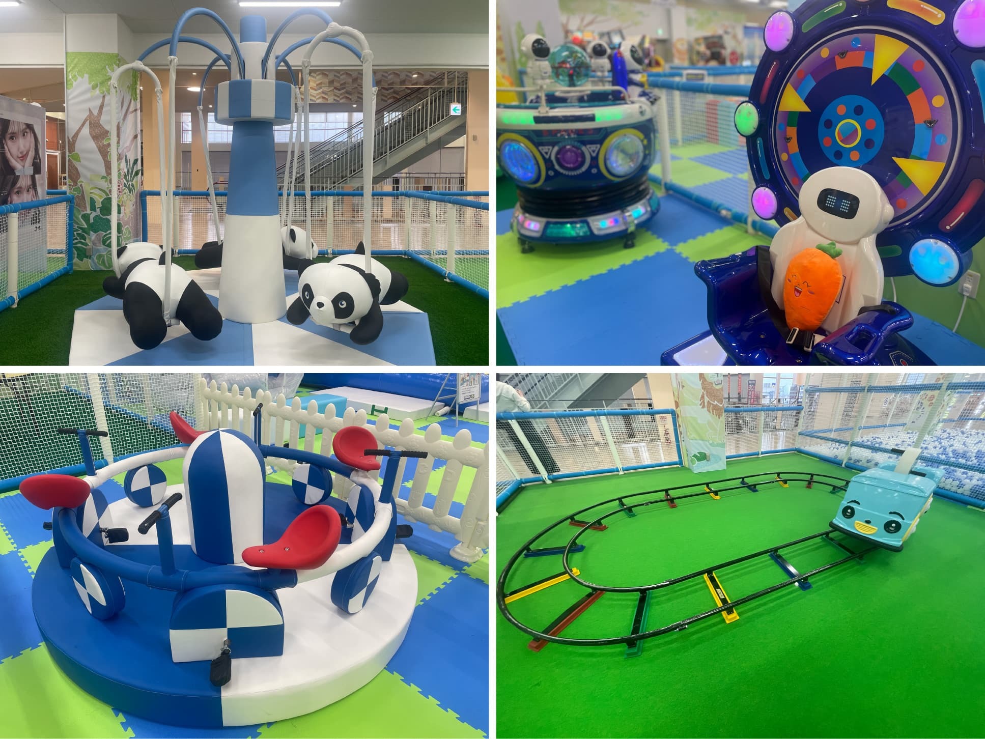パンダメリーゴーラウンドや手回しで進む汽車などユニークな乗りものが大集結!