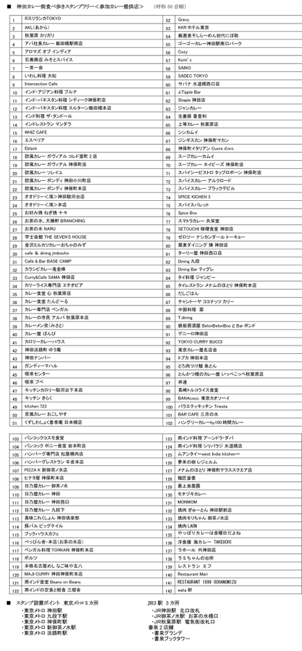 神田カレー街食べ歩きスタンプラリー<参加カレー提供店> (呼称50音順)