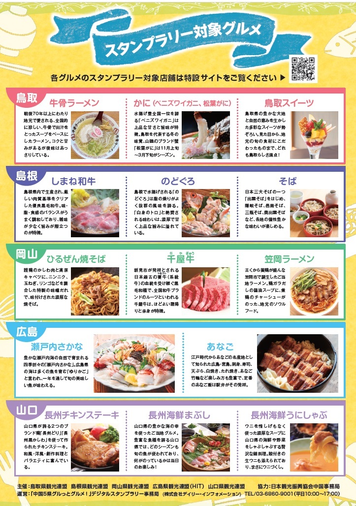 中国5県自慢のグルメが大集合! 豪華特産品が当たる「中国5県グルっとグルメ! スタンプラリー」10月1日スタート!