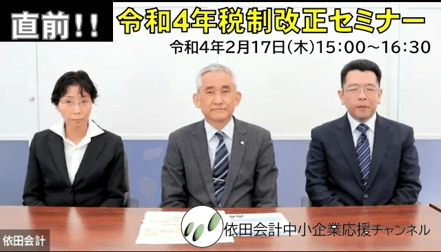 第103回経営支援セミナー 「令和4年度税制改正セミナー」 2022年2月17日にオンライン配信