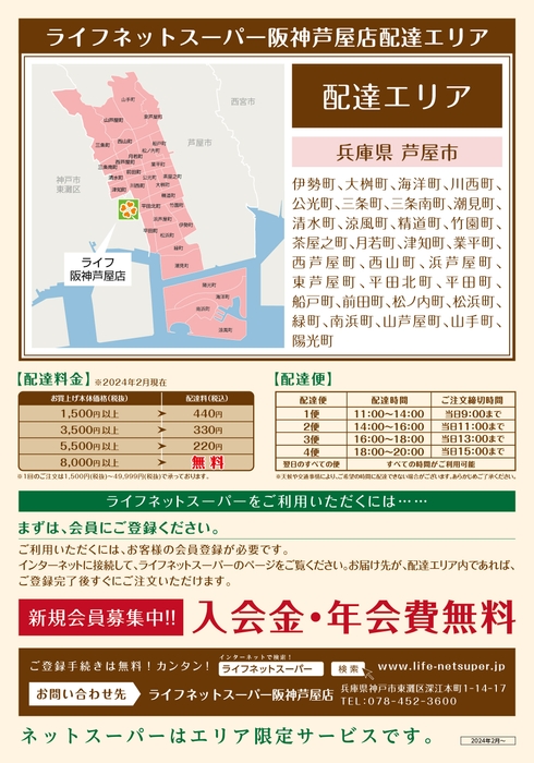 “おいしい” “ワクワク” “ハッピー” をお届けするライフコーポレーションは、2月21日(水)より阪神芦屋店で「ライフネットスーパー」のサービスを開始しました。