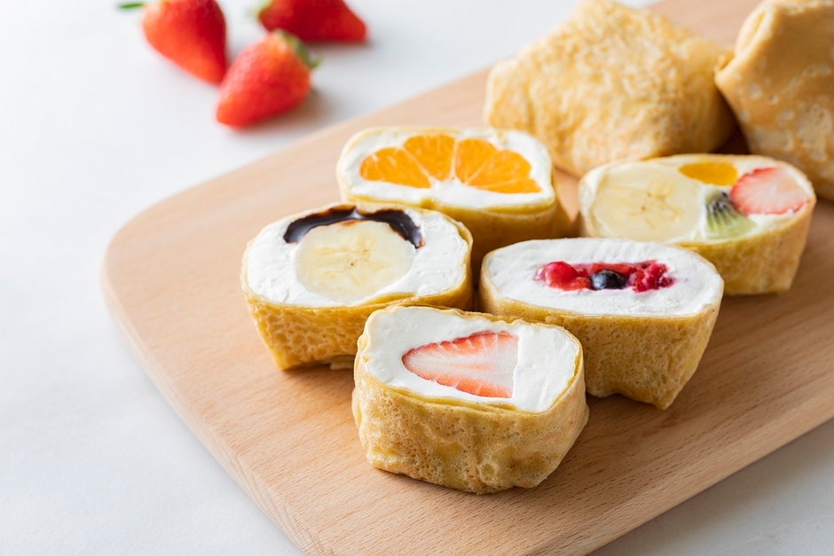 通常のスタンドタイプのクレープに加えて、旬のフルーツを手焼き生地で包み込んだ、ラップドクレープもご用意しており、伊豆旅行の1ページを彩るお土産にもお使いいただけます。