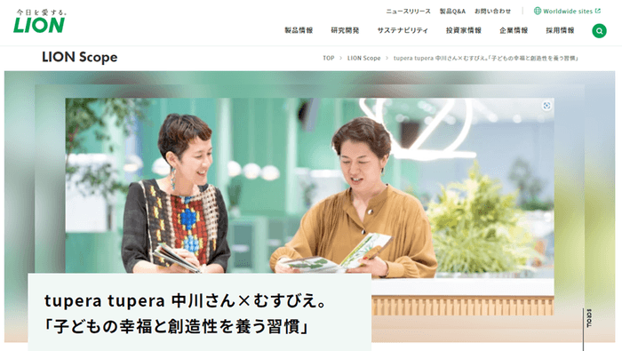 “tupera tupera中川さん×むすびえ。 「子どもの幸福と創造性を養う習慣」” インタビュー記事を「LION Scope(ライオン スコープ)」にて、 2024年12月25日に公開