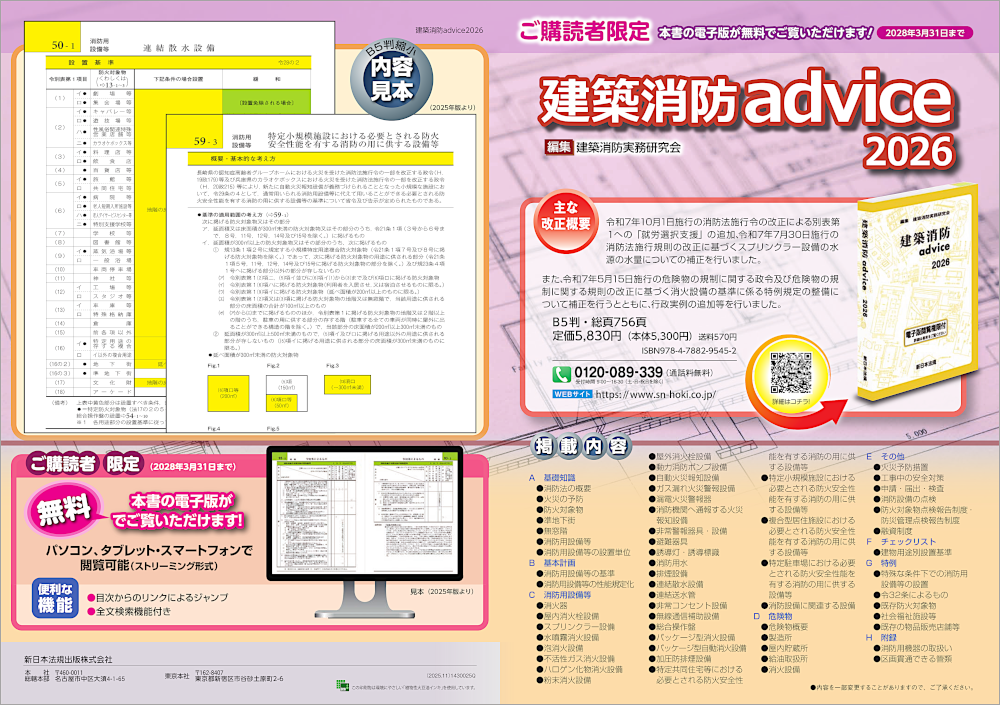 電子版閲覧権限付書籍『建築消防advice2026』1/20新刊書発売!