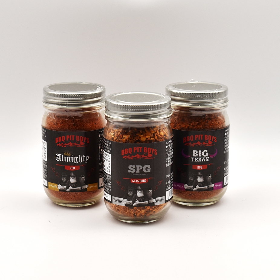 日本の市場に合わせて現地のオリジナルサイズよりも小さくて使い切りやすい90g~100gのミニボトルでご用意しました。スプーンなどで取り出しやすい大口径のガラスボトルを採用。BBQ PIT BOYSのようにキャンプなどでワイルドに使っていただきたいスパイスです。