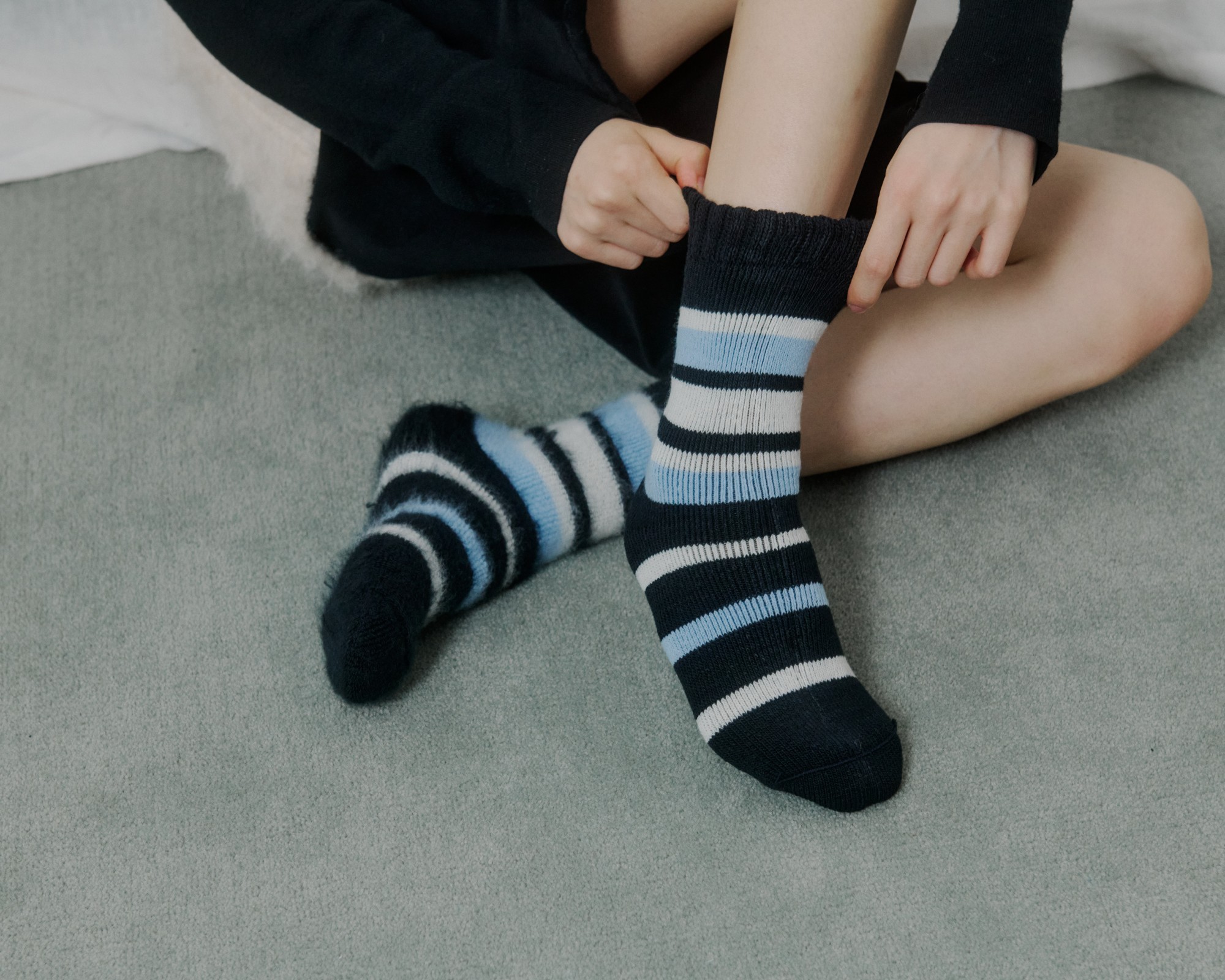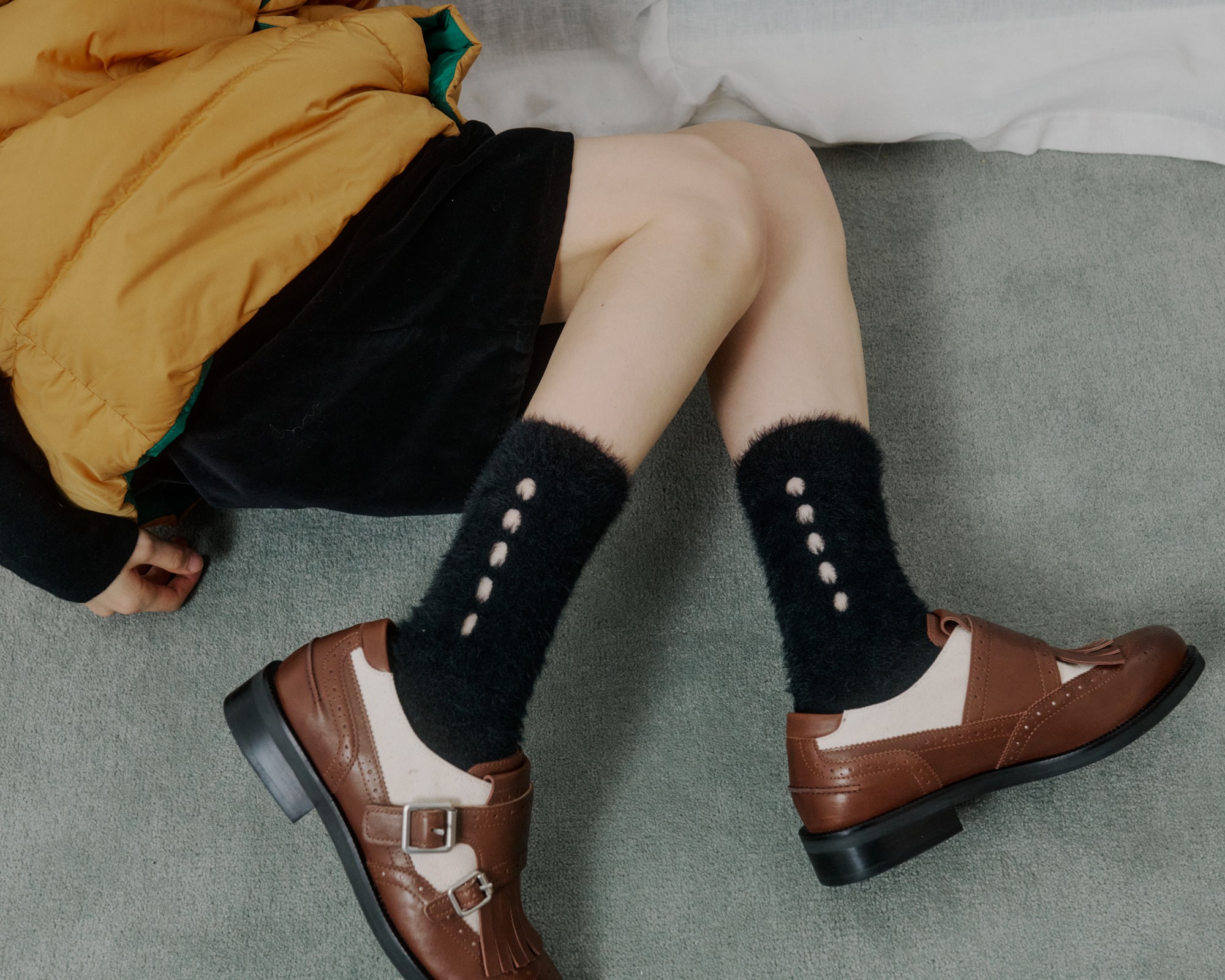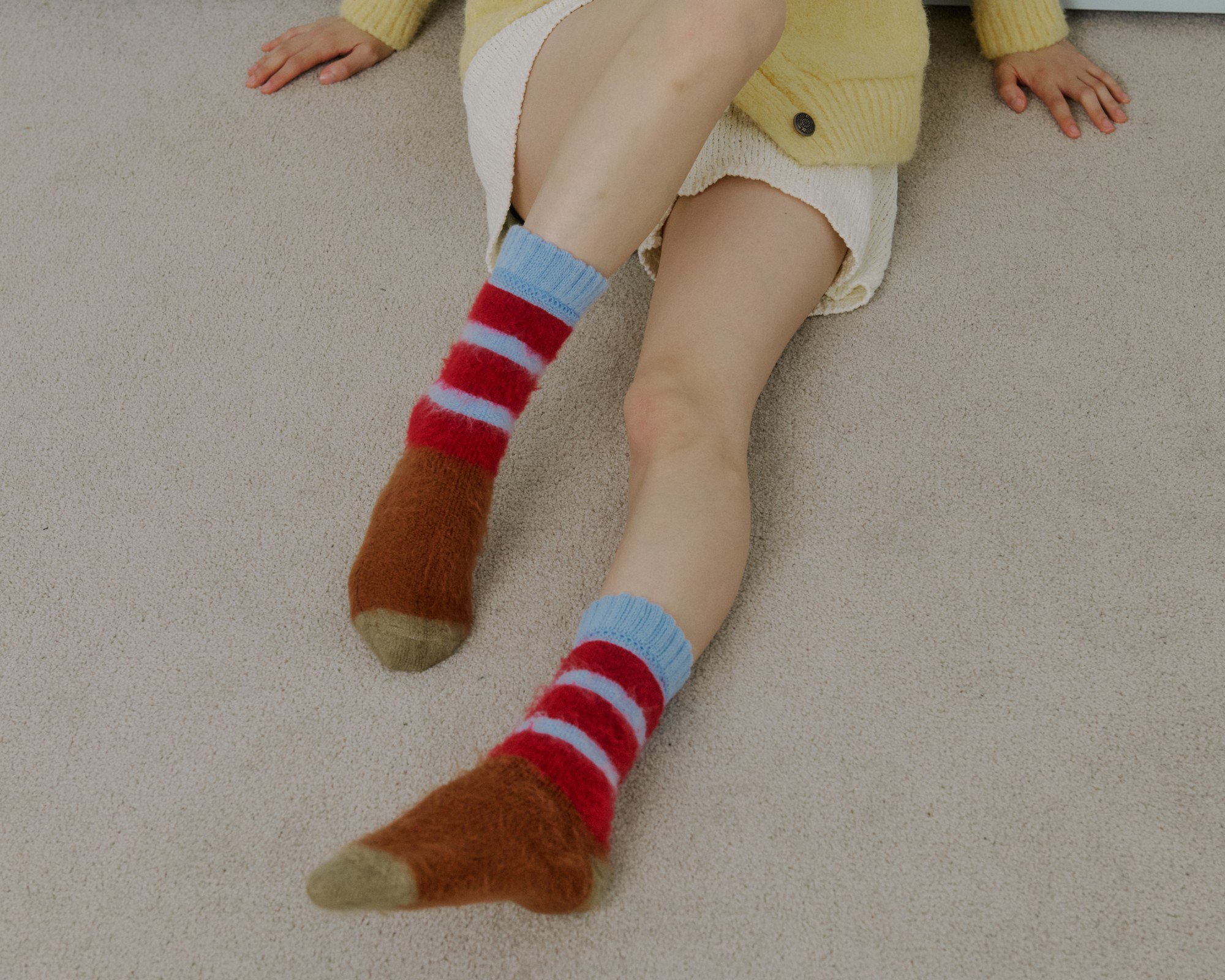 まるで綿あめのようなふわもこ素材が魅力のソックス。ソックスでは珍しいリバーシブル仕様で、気分に合わせて2通りの表情が楽しめます。カラフルな5色展開で、ルームソックスにもおすすめです。