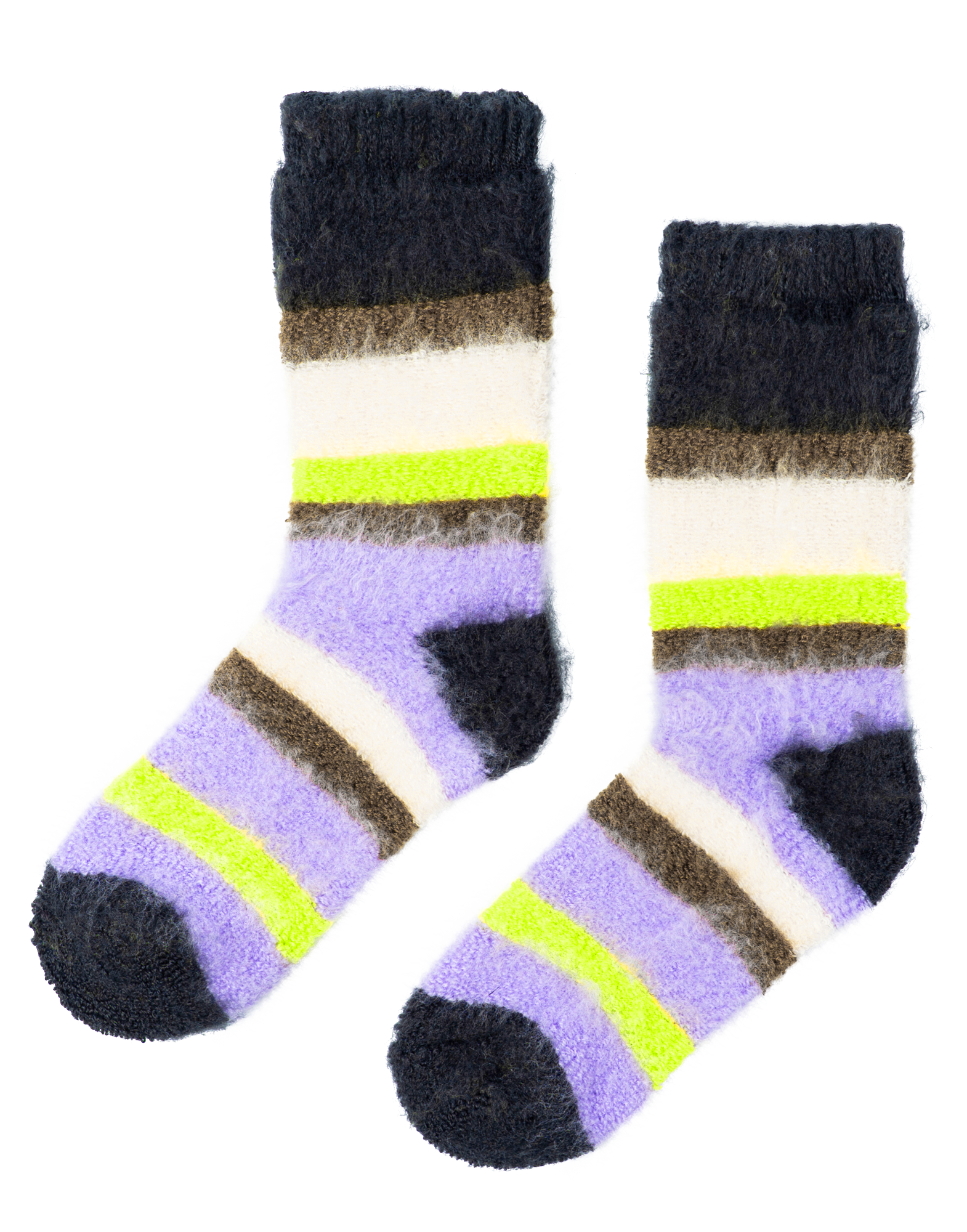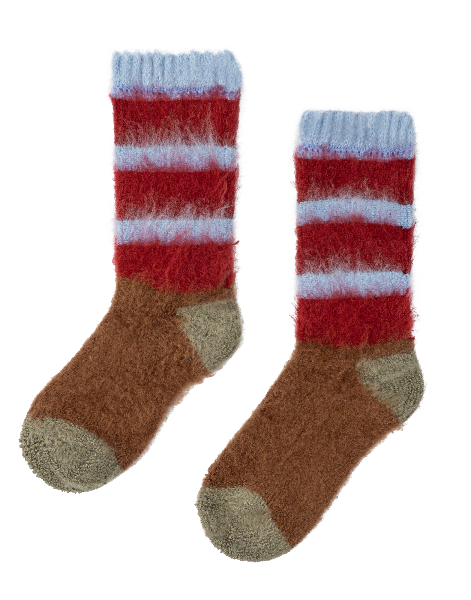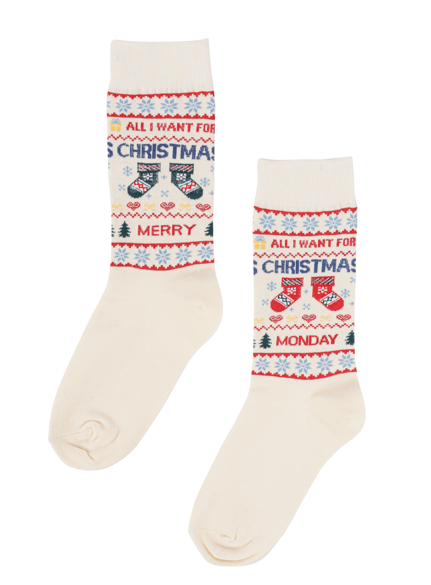 今回のラインナップは、まるで綿あめのようにふわふわの「Candyfloss Socks(キャンディフロスソックス)」や、クリスマスをモチーフに遊び心あふれる「Christmas Socks(クリスマスソックス)」などのユニークなソックスに加え、手袋とアームウォーマーがセットになった「Monday Glove(マンデーグローブ)」、ブランドのアイコニックなパターンを用いた「Monday Foot Mat(マンデーフットマット)」など、冬の暮らしを彩るアイテムが勢ぞろいします。