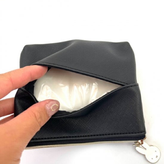 裏面は無地のブラックになっています。ファスナーのゴールドの引手がミッフィーになっているところも高ポイント!