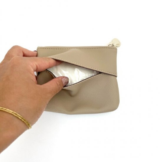 上部のファスナーを開ければ、リップや目薬、お家の鍵などを入れるのに良さそうな小物入れ♪