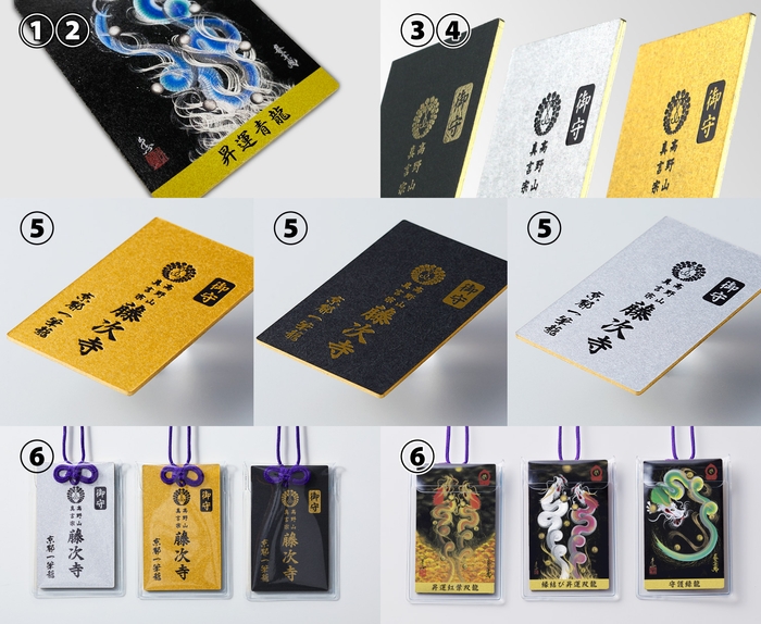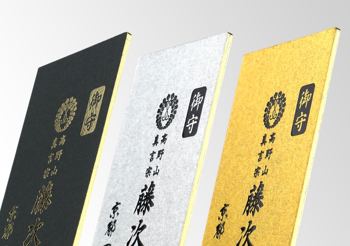 ⑤表面に「御守」「高野山 真言宗 藤次寺」「京都一筆龍」を金箔及び、金色/白金紙には黒箔を使用