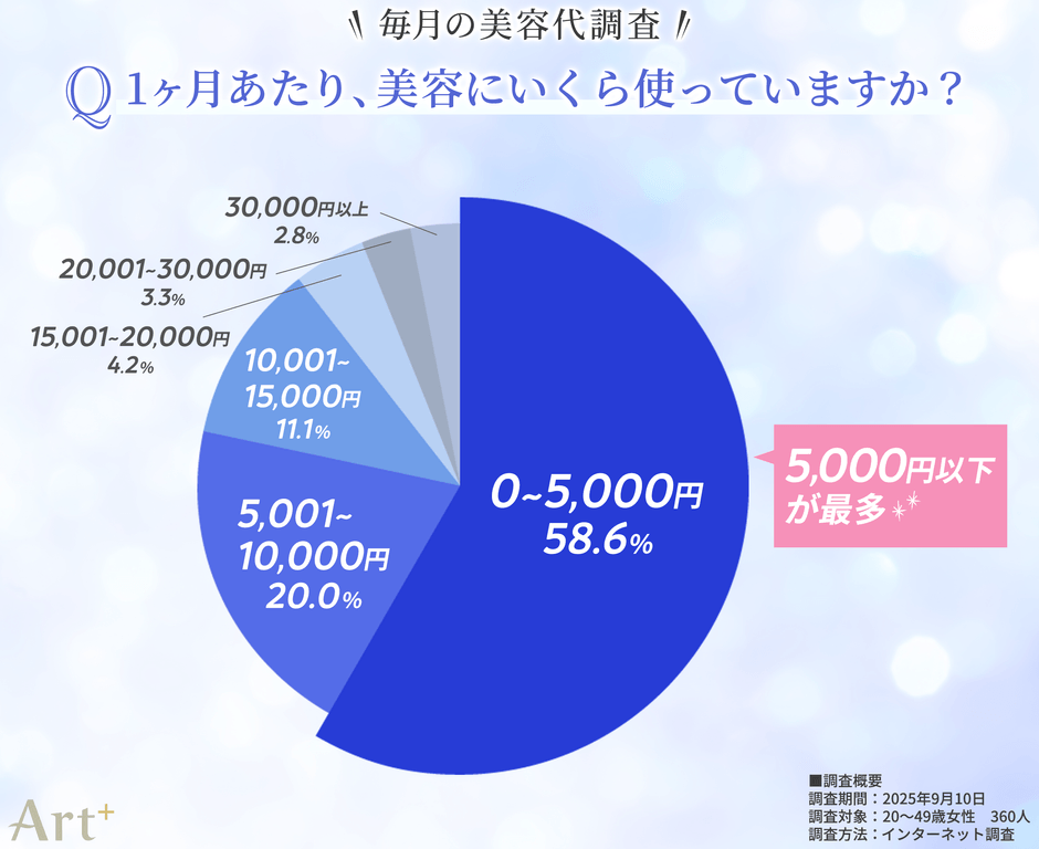 今回は20~40代の女性を対象に「毎月の美容代」についての調査を実施しました。今後もArt+は、忙しい日々の中でも自分の理想を叶えられるような情報について発信をしてまいります。