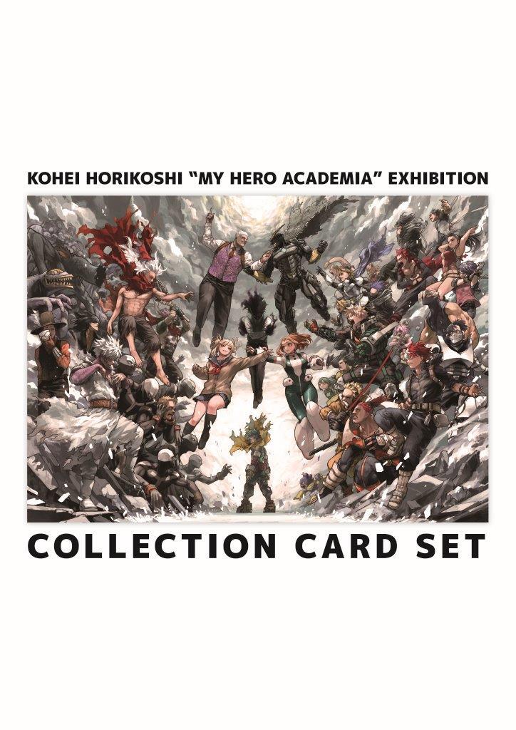 展覧会描きおろしキービジュアル[ヒーローVS敵(ヴィラン)]のイラストを使用した、豪華ホロ加工のコレクションカードセット。