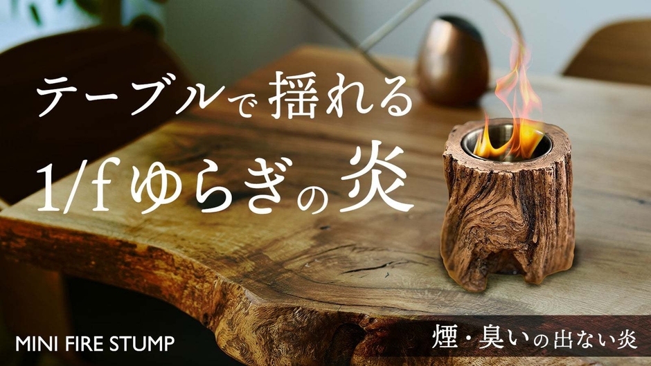 近年世界的にキャンプブームとなり初心者からベテランまで幅広い層のキャンパーに手軽に焚き火を楽しんで頂きたい思いからこの製品が生まれました。アウトドアや室内でも簡単に焚き火気分を味わえる製品がMINI FIRE STUMPです。