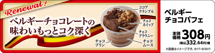 秋冬向けにリニューアル‼ 「ベルギーチョコパフェ」 9月17日(火)より 新発売!