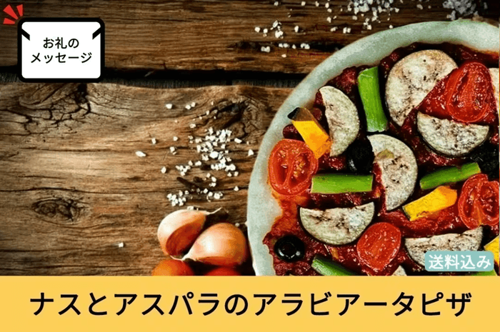 彩り野菜のトマトソース、豆乳チーズのマルゲリータ、きのことカボチャのホワイトソース、ナスとアスパラのアラビアータ(辛味あり)、野菜たっぷり焼きカレー(中辛・幼児非推奨)、応援メールのみのコースから1つ選択。