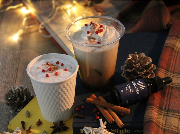 CBD(正式名称「カンナビジオール」の略称)は、麻(アサ)の成熟した茎から抽出される植物栄養素で、ストレスなどで過剰になった神経を落ち着かせるリラックス効果などで今注目を集めています。今回の限定メニュー「CBD+スパイシーノニチャイラテ」は、ホールスパイスからチャイベースを作り、ノニリーフを焙煎したお茶にCBDオイルを加えたスパイシーな本格派のチャイラテです。さらに生姜をプラスしているので、体の中からポカポカと温まります。チャイラテの上には、ホイップとピンクペッパーをトッピングし、ホリデーシーズンにぴったりの一杯に仕上げました。