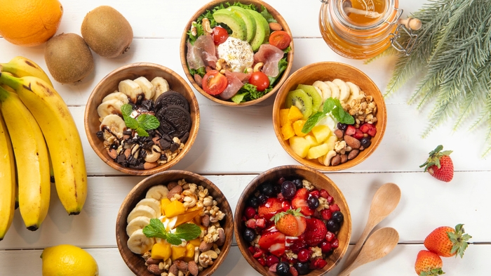 「キャラメルナッツ&マンゴー」は、完熟マンゴーとバナナがキャラメルの甘さを引きたて、口に入れた瞬間にキャラメルの香りが広がる一品です。キャラメルの飴のカリカリ感やナッツの香ばしさもお楽しみいただけます。また、「ストロベリー&ベリーミックス」は、甘酸っぱいいちごやベリーとはちみつの相性が抜群。グラノーラのザクザクとした食感と、グリークヨーグルトの濃厚な後味をご堪能いただけます。そして、デザートメニューだけでなく、サラダ感覚でお召し上がりいただける「生ハム&アボカド」もご用意。濃厚なアボカドと生ハムの塩味に、ブラックペッパーのスパイシーさが絶妙に調和した一品です。