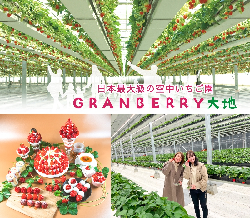 いちごが宙に浮かんでる!日本最大級の空中いちご農園「グランベリー大地」とは?