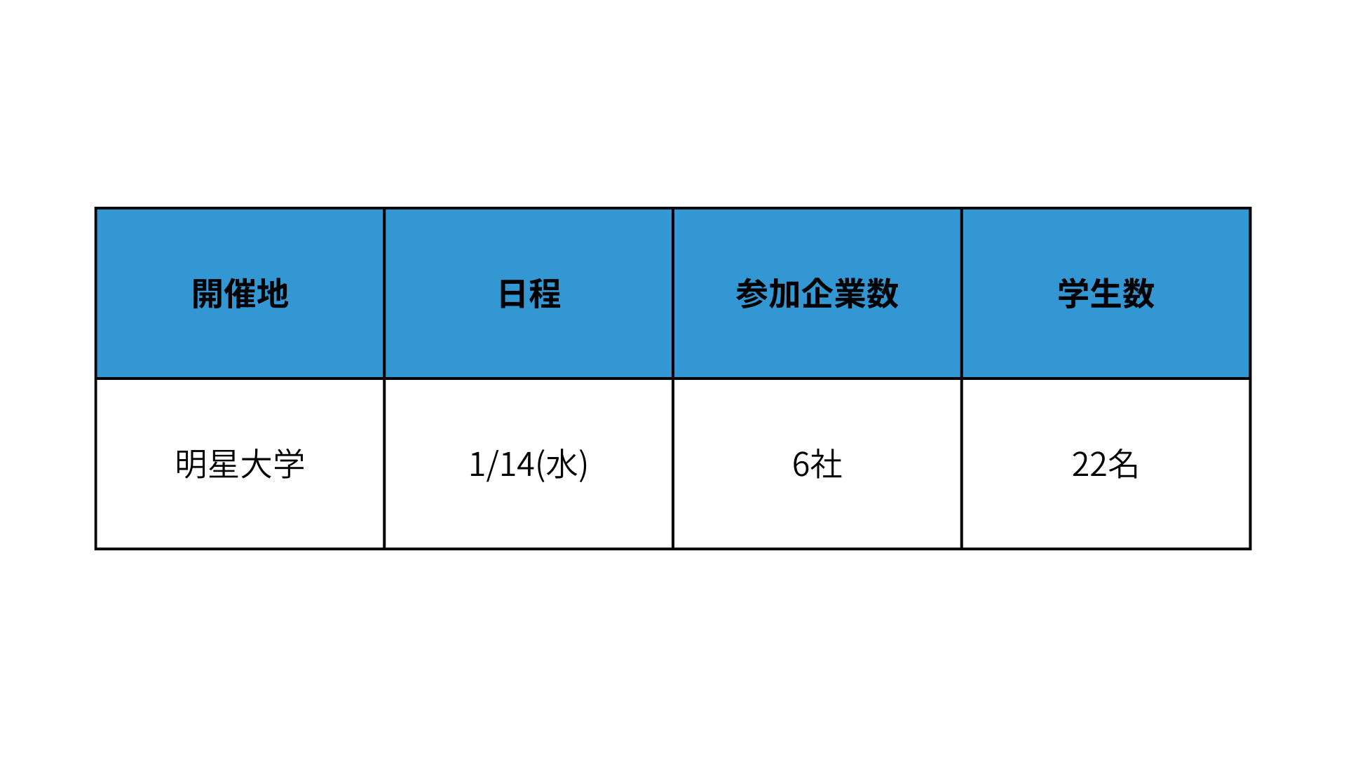 1月14日(水)明星大学で開催。採用直結の“偶然な出会い”を提供。